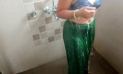 Awesome big breasted Indian hottie takes a hot shower to flash her donk