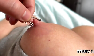Hard Playing With Pierced Nipples With Milf Meaty Tits