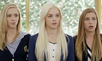 сексуально-позитивный блондинистый репетитор нежно ласкает и делает глубокий минет мужчине темного оттенка, в то время как на нее никто не смотрит