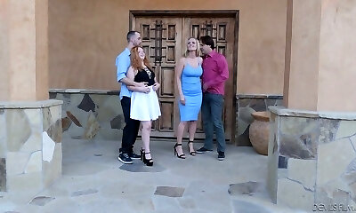 Two Sexy Chubby-booty Towheaded Hotties Swap Their BFs To Enjoy Gonzo Foursome