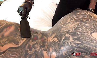 Crazy pornstar Black Widow in mischievous piercing, tattoos sex scene