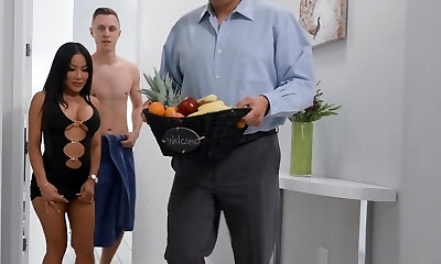 Asian wife Yuuki Iori gets unwrapped and fucked by a younger guy