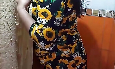 Awesome big breasted Indian hottie takes a hot shower to flash her donk