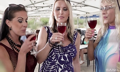 Two slutty MILFs have fun with the BBC while their bikinis barely cover their nipples