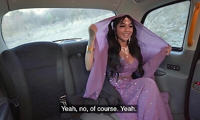 Divorced fledgling nymph having sex in a taxi with the driver