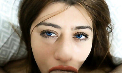 Steamy brunette with huge boobs deep throats my bone and gives her cunt [POV]