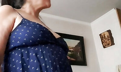 Busty Mature Bbw with hairy pussy posing in tight shorts