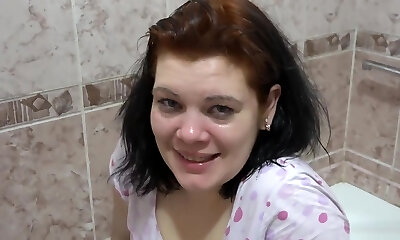 Blonde BBW Slutwife With Huge Boobs Plays with Piss