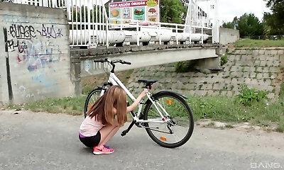 Sporty dark-haired damsel forgets about riding a bike and rides dick instead