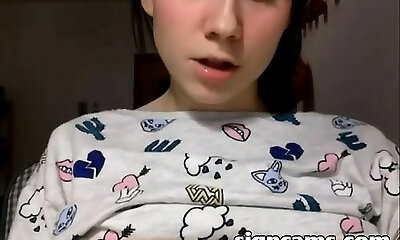 19 year elderly busty webcam girl with innocent face kneads her big natural ti